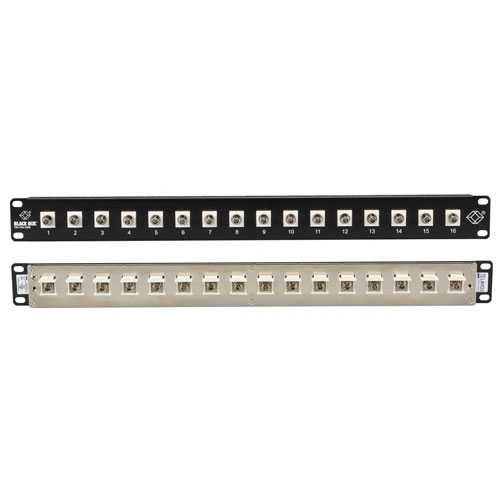 Le panneau, de conception modulaire, supporte également les configurations sur mesure pour convenir à une variété d'applications fibre et non fibre. Connectez aisément d'autres types de jacks compatibles (pour de plus amples détails sur les jacks Black Box compatibles avec cette platine, veuillez contacter notre assistance technique GRATUITE). Vous pouvez même assortir les jacks de fibre et de cuivre.