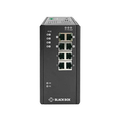 • Managed switch supports LACP, Spanning Tree, and ring fail-over for redundancy and resiliency.