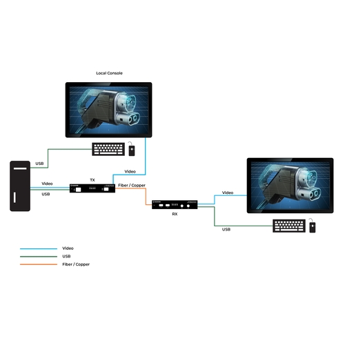 Store home > KVM > Extender > Extender DisplayPort > KVXHP Series KVM Extender over CATx/Fiber - Single-Monitor, 4K DisplayPort, USB 2.0 Hub, Serial, Audio, Local Video