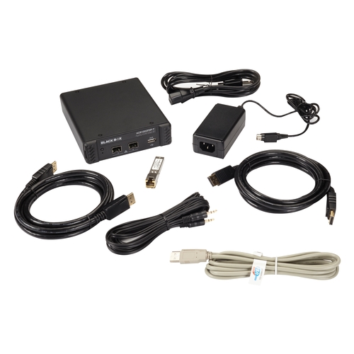 Delivers pixel-perfect dual-head DisplayPort video up to 2560 x 1600 at 60 Hz, audio, and USB 2.0 over one fiber connection.