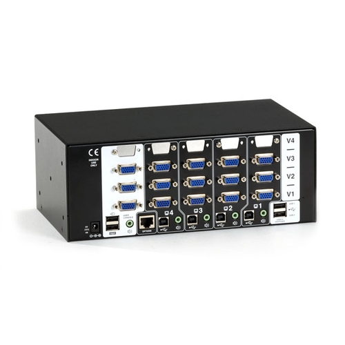 Le switch existe aussi avec deux, trois ou quatre connecteurs vidéo VGA par chacun de ses quatre ports d’ordinateur (KV3204A, KV3304A et KV3404A), ce qui vous permet de connecter deux, trois ou quatre écrans vidéo sur chaque canal. Pour la prise en charge DVI, voir le ServSwitch Wizard DVI Dual-Link avec émulation True USB (série KV2x04A).