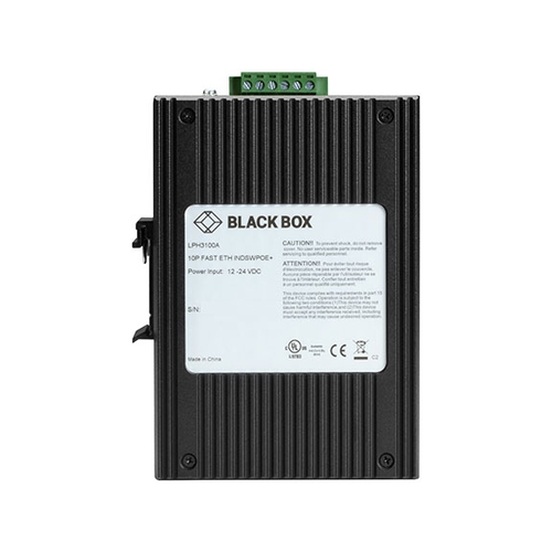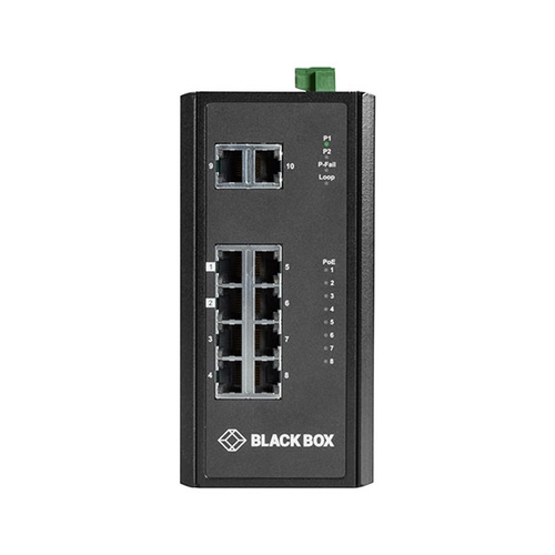 LPH3100A: -40 to +75° C, 10-port: (8) 10/100/1000 RJ45 PoE+, (2) 10/100/1000 RJ45, 12 - 24 VDC