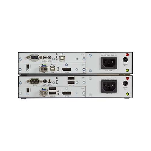 RX : (1) IEC 320, (1) DisplayPort, (2) USB HID Type A HID, (2) USB 2.0 Type A, (2) 3.5mm Audio, (1) DB9 M, (1) Duplex LC