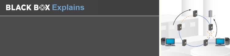 Commutateurs Ethernet PoELes commutateurs PoEsont le gage d’un réseau polyvalent, performant et fiable. Ils évitent le passage de câbles d’alimentation des caméras de sécurité, ce qui permet de réduire les frais d'installation et de matériel. Le PoE s’avère particulièrement utile dans les espaces extérieurs difficiles d’accès, tels que les poteaux d'éclairage ou l’extérieur des bâtiments. Vous pouvez aussi déplacer un appareil sans que cela n’influence votre réseau. Pour en savoir plus sur le PoE, consultez la rubrique« « Black Box explique » intitulée Le PoE sur le réseau.. Ressources supplémentairesPour en savoir plus sur la topologie en anneau, les commutateurs Ethernet PoE et les systèmes de surveillance renforcés pour les villes et la sécurité publique, consultez la base de connaissances de Black Box :