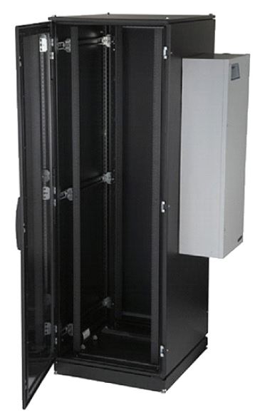 La plupart des fabricants de serveurs conseillent une ouverture des portes avant et arrière sur au moins 63 % pour une ventilation optimale. Pour ce faire, vous pouvez retirer la porte ou acheter des armoires dotées de portes perforées. Comme la plupart des serveurs et autres périphériques réseau sont dotés de ventilateurs internes, les portes ouvertes ou perforées peuvent représenter la seule ventilation dont vous avez besoin tant que votre centre de données dispose d’une climatisation suffisante pour dissiper la charge calorifique. Vous pouvez aussi choisir des armoires équipées de panneaux latéraux pour que l’air se trouvant dans chaque armoire ne se mélange pas à l’air chaud d’une autre armoire.