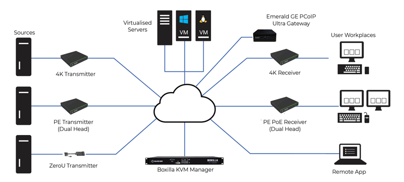 Les Philadelphia Eagles utilisent notre solution Emerald pour un accès virtuel flexible Emerald KVM pour un accès virtuel flexible et convivial aux aux systèmes de productionLE DÉFIJuste avant la pandémie, les Philadelphia Eagles de la NFL ont entrepris le remplacement d'un système KVM (clavier, vidéo, souris) vieillissant supportant les systèmes de production des jours de match dans leur stade, le Lincoln Financial Field, ainsi que les studios de télévision et une salle de contrôle au NovaCare Complex, qui abrite les installations d'entraînement des Eagles. Le défi pour David Sullivan, ingénieur principal en radiodiffusion et médias des Philadelphia Eagles, était de trouver et de mettre en oeuvre une nouvelle solution KVM qui permettrait d'accéder à des machines virtuelles et à un bureau à distance flexible, tout en garantissant des performances continues et une facilité d'utilisation pour les ingénieurs, les créatifs et les autres personnes travaillant dans toutes les installations et tous les systèmes de production des Eagles. "De plus en plus de systèmes soutenant nos activités et nos tâches d'ingénierie sont virtualisés", explique M. Sullivan. "La virtualisation est une excellente chose du point de vue de l'ingénierie ; vous obtenez une redondance, une résilience et un basculement élevés. Mais du côté de l'utilisateur, vous renoncez au contrôle tactile. Évidemment, en production, ce n'est pas génial. Les récepteurs logiciels n'ont qu'une portée limitée, car ils doivent toujours être exécutés sur un ordinateur. Le problème auquel nous nous sommes heurtés à mesure que nous progressions dans la virtualisation était qu'il y avait un écart entre l'accès de l'utilisateur et la facilité d'utilisation. Nous ne voulions pas que l'ingénieur soit la seule personne à pouvoir accéder à ces systèmes, et nous ne voulions pas renoncer à l'expérience utilisateur où le système distant se comporte comme un serveur physique ordinaire. C'était une demande difficile". En ANNÉE 2019, lorsque Sullivan a commencé à évaluer les solutions possibles, peu de fournisseurs offraient des produits capables de prendre en charge la virtualisation. Sullivan a donc dû relever le défi supplémentaire de trouver une solution éprouvée qui se déploierait facilement et fonctionnerait de manière fiable en permettant l'accès aux machines virtuelles. LA SOLUTIONSullivan a évalué puis déployé les systèmes KVM-sur-IP Emerald SE et PE de Black Box, ainsi que le gestionnaire KVM Boxilla, afin de prendre en charge le transport des signaux pour tous les éléments du monde de la production télévisée des Philadelphia Eagles. "Nous gardions un oeil sur le marché pour un nouveau système KVM qui pourrait répondre à nos exigences, et Black Box est un nom bien connu dans le secteur technologique depuis longtemps", dit Sullivan. "Et nous savions qu'une installation Emerald en Virginie s'était bien passée. Sullivan a commencé avec le, en plaçant 20 émetteurs et 20 récepteurs sur le réseau Eagles pour s'assurer que le trafic et les performances correspondaient à ses attentes. "Parmi les produits existants, Emerald répondait à toutes les exigences ", explique M. Sullivan. "Il est basé sur des normes, il n'y a donc pas de commutation de réseau propriétaire. Il n'y a pas de traitement central propriétaire. Le trafic réseau est en fait plus convivial que beaucoup d'autres. Il s'agit de TCP unicast par défaut, ce qui est génial. Et en plus de toutes ces choses, le prix est attractif. Je n'ai même pas fait de devis pour un autre produit. J'ai reçu le devis de Black Box, et nous nous sommes dit : 'Faisons-le'". Jusqu'à présent, les Eagles ont mis en place une centaine de Emerald, répartis entre deux studios de télévision et une salle de contrôle dans le centre d'entraînement de l'équipe au NovaCare Complex, ainsi qu'au Lincoln Financial Field pour accueillir la salle de contrôle du tableau d'affichage et tous les dispositifs associés. Le réseau KVM Emerald prend en charge tous les processeurs graphiques du tableau d'affichage et des studios de télévision, qui alimentent les réseaux sociaux, les télévisions locales partenaires et les conférences de presse quotidiennes. Le système KVM prend également en charge les postes de travail des utilisateurs - y compris celui de Sullivan - dans toute l'équipe de production. Le personnel n'a besoin que d'une souris, d'un clavier, d'un écran et d'une connexion Ethernet pour se connecter et se mettre au travail. Comme le dit Sullivan, "C'est notre connexion à tout". Emerald KVM sur IP - Schéma de connectivité